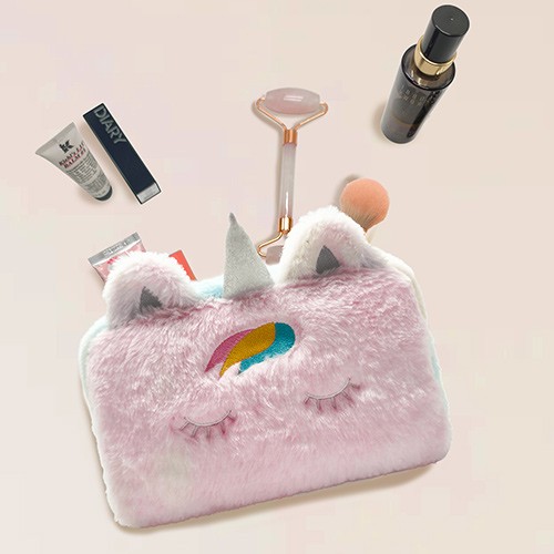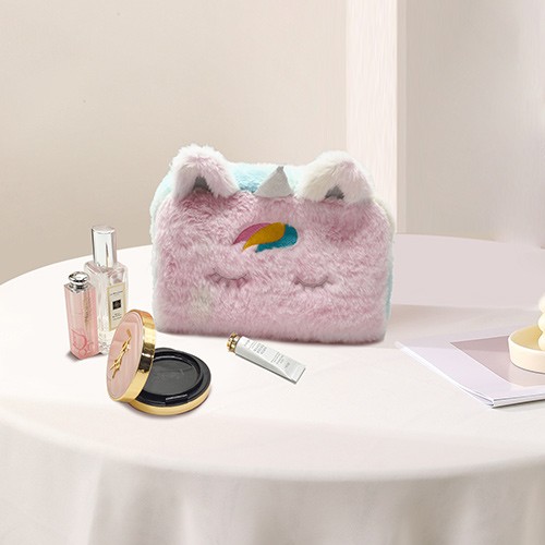 Eco Friendly Lamb Velvet Cosmetic Pouch Felt Plush Women Terry Travel Organizer Sherpa Bag