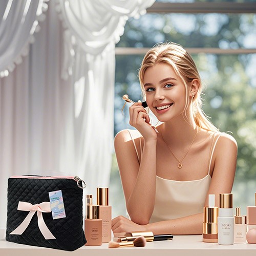Fashion Luxury Textured Tweed Material Custom Small Storage Bag Cosmetic Bag