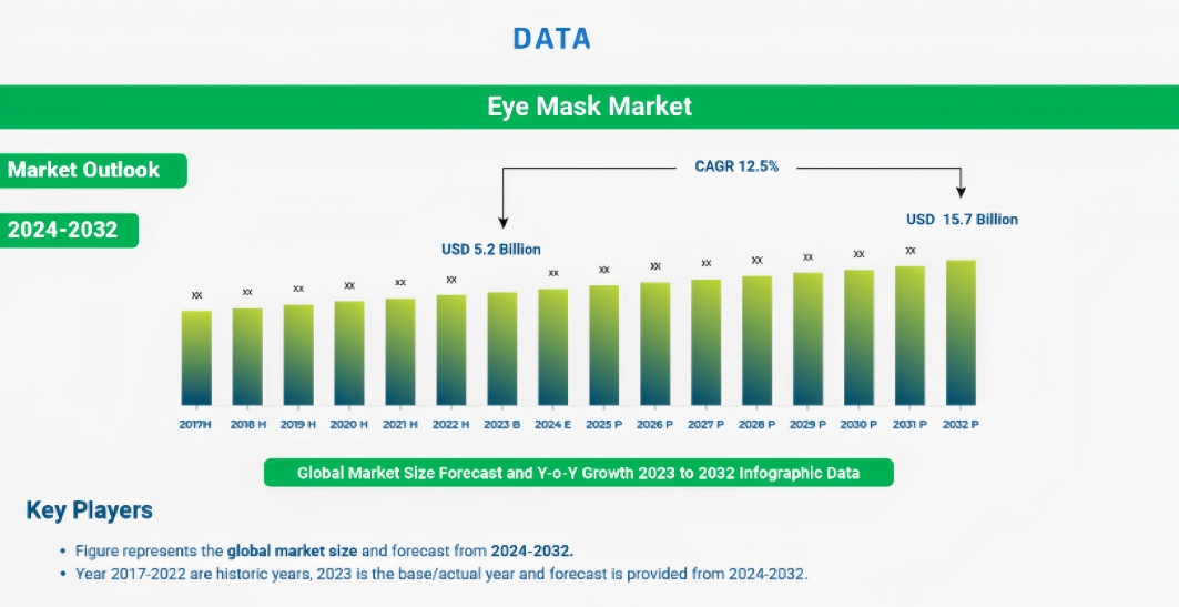 The global eye mask market size was USD 5.2 Billion in 2023 and is projected to reach USD 15.7 Billion by 2032, expanding at a CAGR of 12.5% during 2024–2032. The market growth is attributed to the increasing awareness about the importance of quality sleep across the globe.